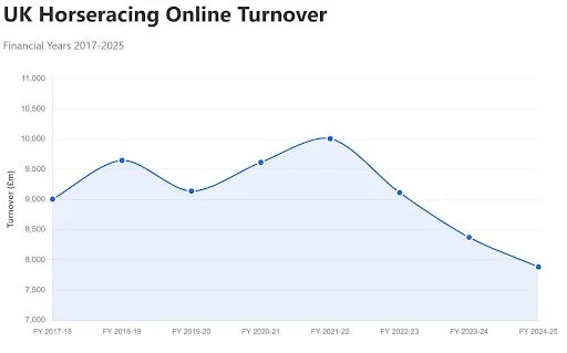 UK horseracing online betting turnover is in decline. Source: UK Gambling Commission (via Paul Fitzgerald on X)