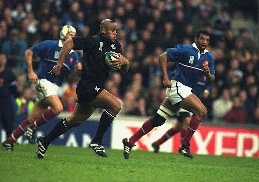 Jonah Lomu in full flight against France. Source: Dave Rogers / Allsport via Getty Images
